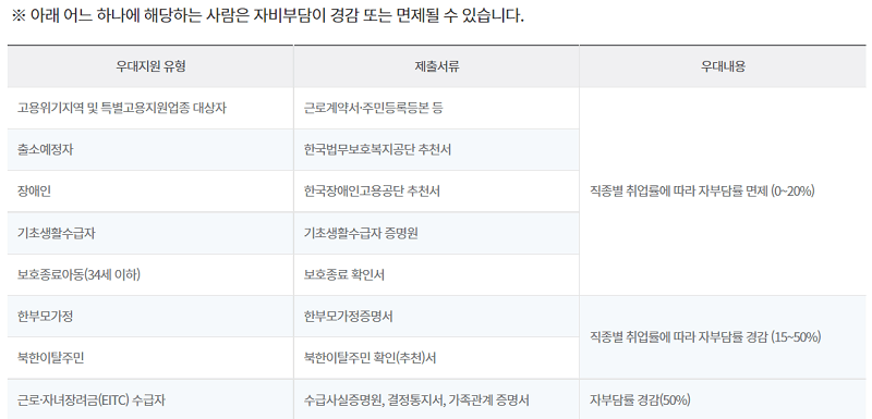 ② 과거 3년간의 직종 평균 취업률에 따라 교육비의 45~85%까지 지원합니다. 국민취업지원제도 대상자는 교육비의 80~100%를, 근로장려금(EITC) 수급자는 72.5~92.5%까지 지원받을 수 있습니다. 본인 부담금이 일부 발생하긴 하지만, 양질의 교육을 상당히 저렴하게 받을 수 있어 보입니다.