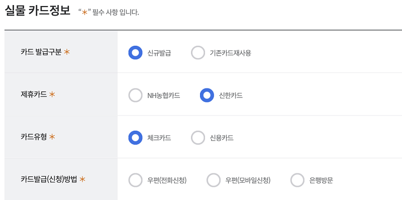카드 발급과 배송에 관한 정보 등을 입력합니다.